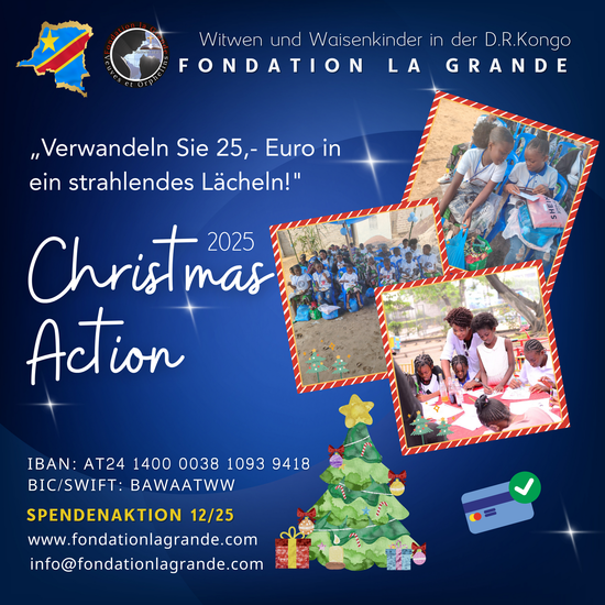 Unsere jährliche Benefizveranstaltung findet am 29. November 2025 in Wien statt. Mit Musik, einem Theaterstück und gutes Essen von Catering La Grande freuen Sie sich auf eine Möglichkeit den Witwen und Waisenkindern in der Demokratischen Republik Kongo gutes zu tun! Wir freuen uns auf Sie!
